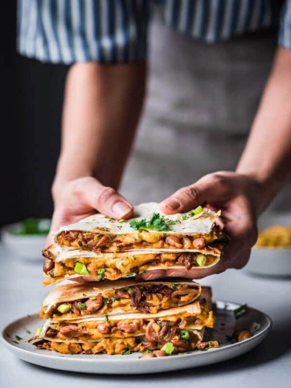 Vegan Quesadillas with Smoky Cheese and Refried Beans