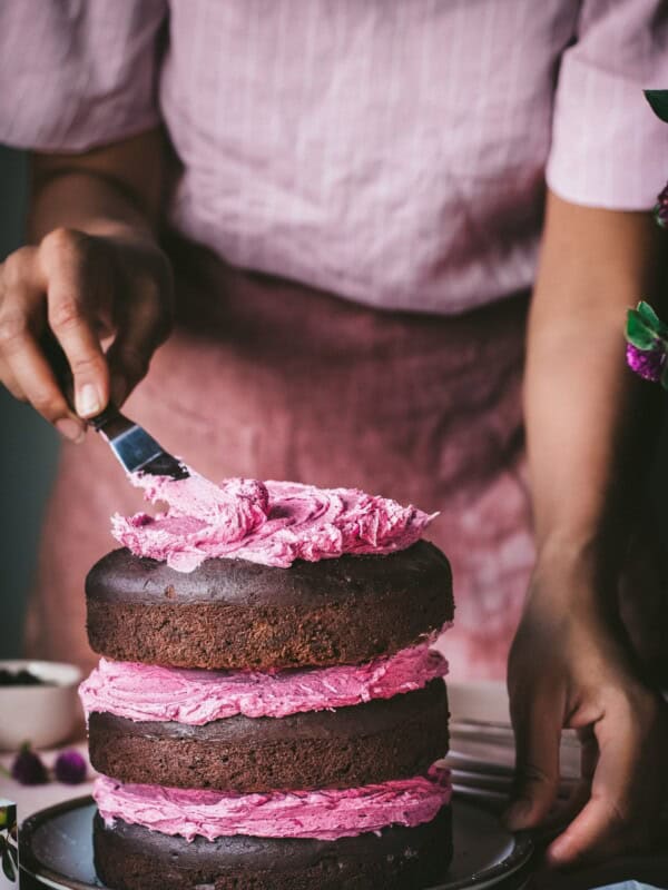 Vegan Chocolate Layer Cake with Hibiscus Frosting