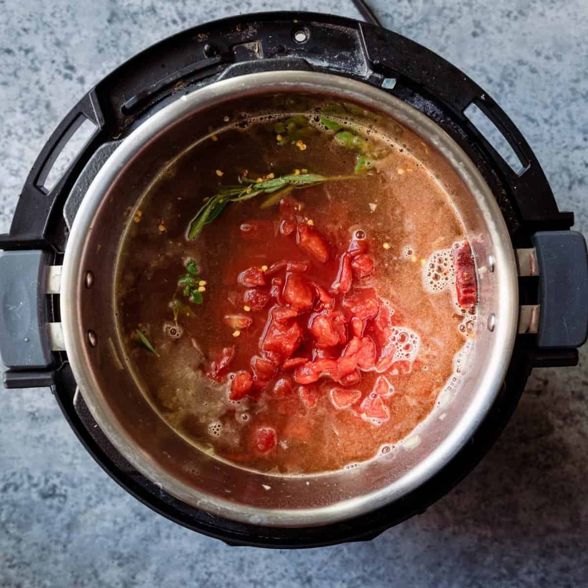 Pour in the diced tomatoes and stir to combine. Select the Pressure Cook setting at high pressure for 4 minutes. Once the timer is done, allow a natural pressure release for 5 minutes.