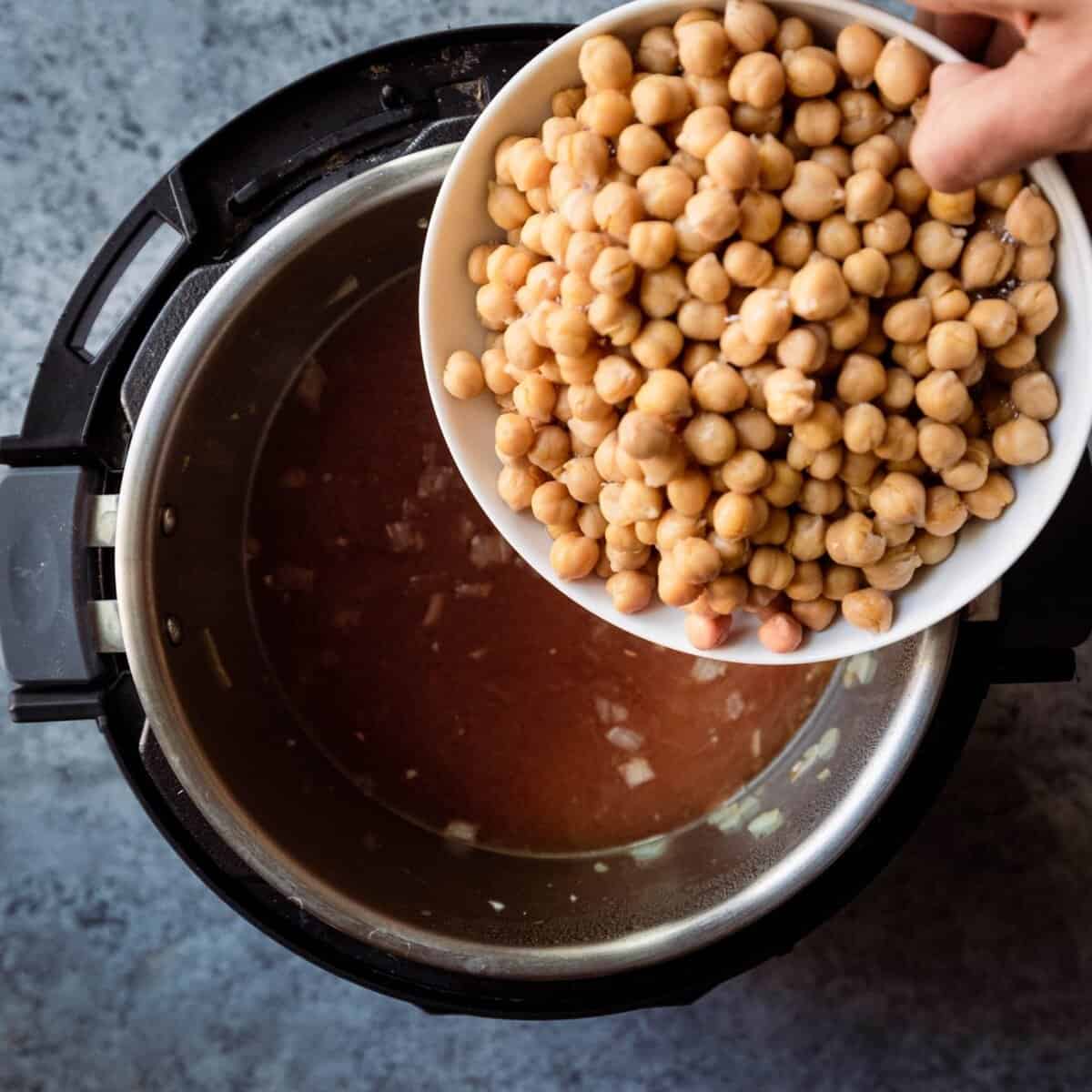Pour in the remaining broth and water, along with the chickpeas.