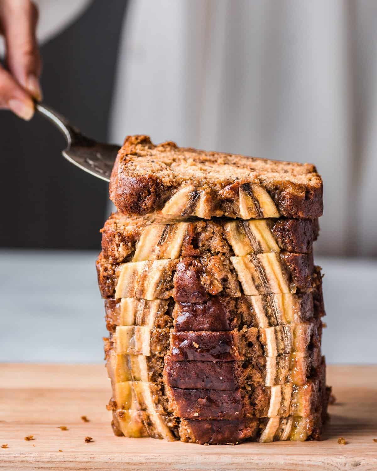 I use aquafaba primarily for the latter purpose. I love using it when I want to add some light tenderness and fluffiness to a baked good. Itโs particularly good in cakes like this light and tender Vanilla Layer Cake, but itโs also one of the secrets to my incredibly popular 8-Ingredient Banana Bread.