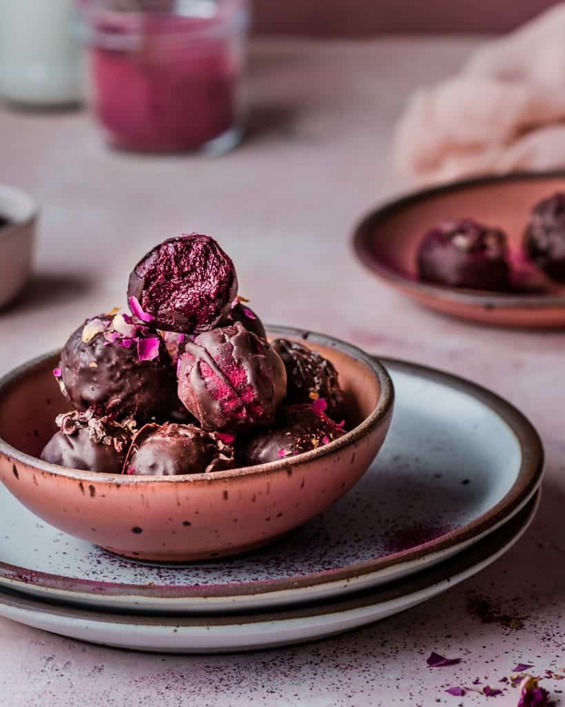 I made these a couple of times and love them so much! I grew some beets on my balcony and will soon make another batch of these amazing truffles. Easy, beautiful and delicious. Thanks for the recipe!