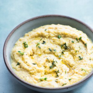 Think of this as a healthier but equally decadent spin on mashed potatoes. It’s so creamy and rich that no one will ever know they’re eating cauliflower (unless you tell them, of course). This mash is great to have on hand as a side dish for your favorite protein or as a bed to serve underneath your main course, and will stay fresh in the fridge for four to five days.