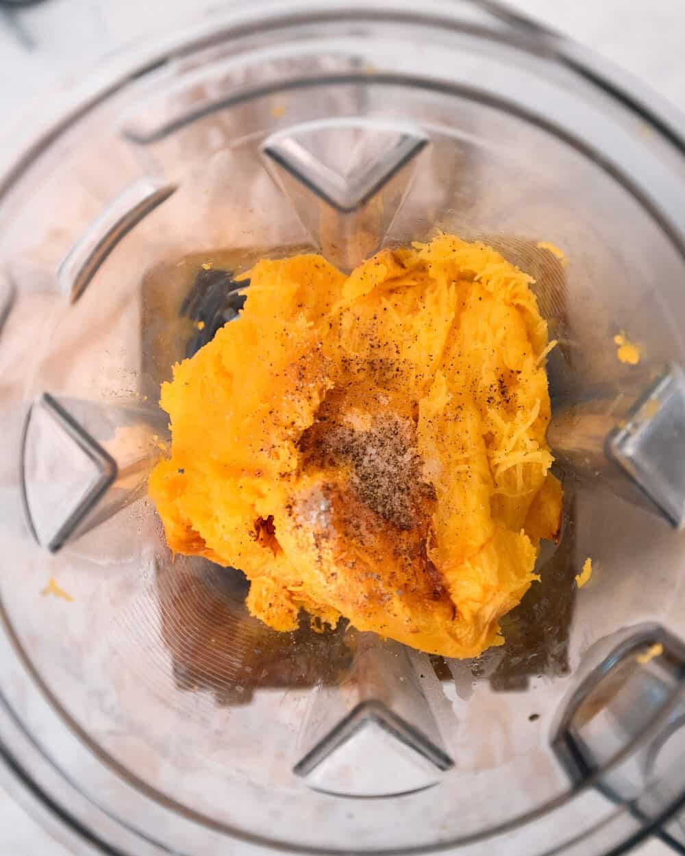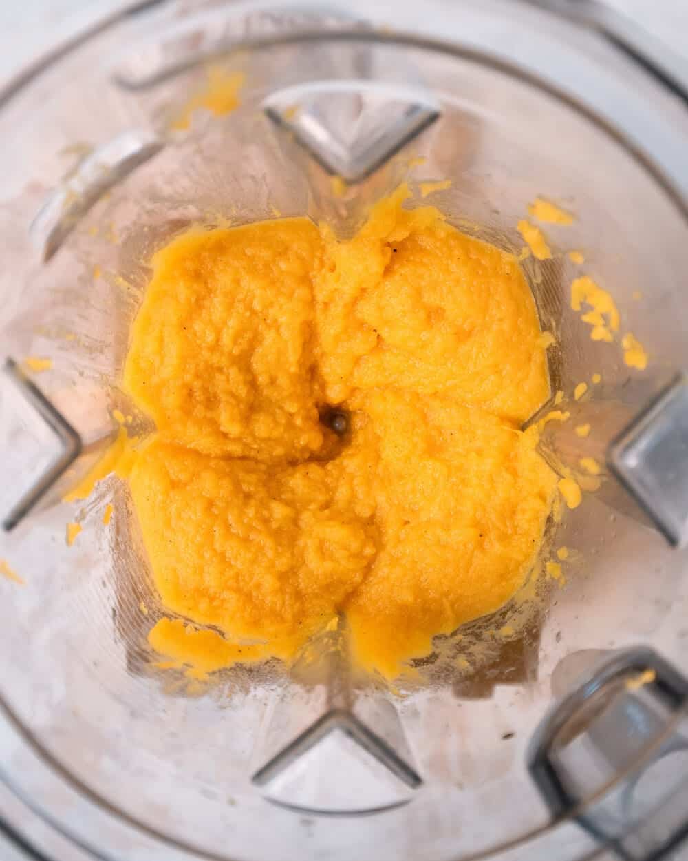 - Make the Pumpkin Sauce: in the blender with the pumpkin, add 1 cup water, 1 ½ teaspoons kosher salt, and black pepper to taste. Blend until smooth – the texture should be a relatively thick puree. If needed, a bit more water until it comes together.