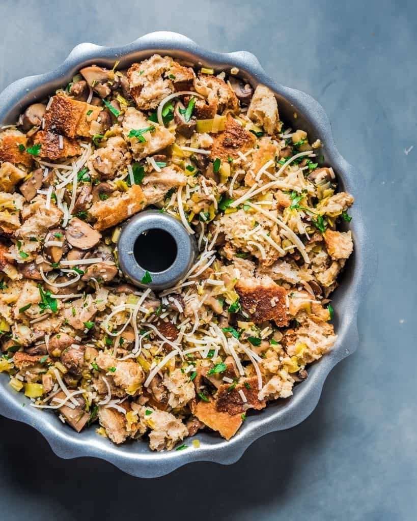 - Allow to cool slightly before serving. If you are making the stuffing in a bundt pan, allow to cool for 20-25 minutes before inverting onto a serving dish.